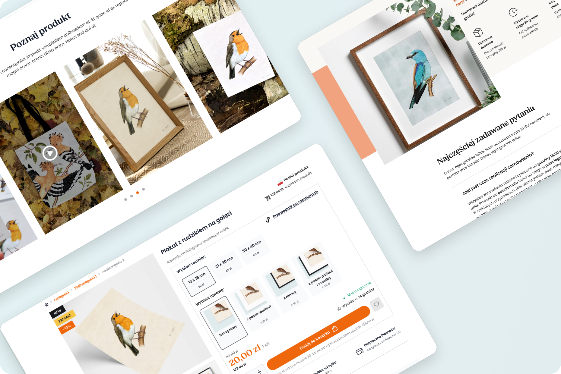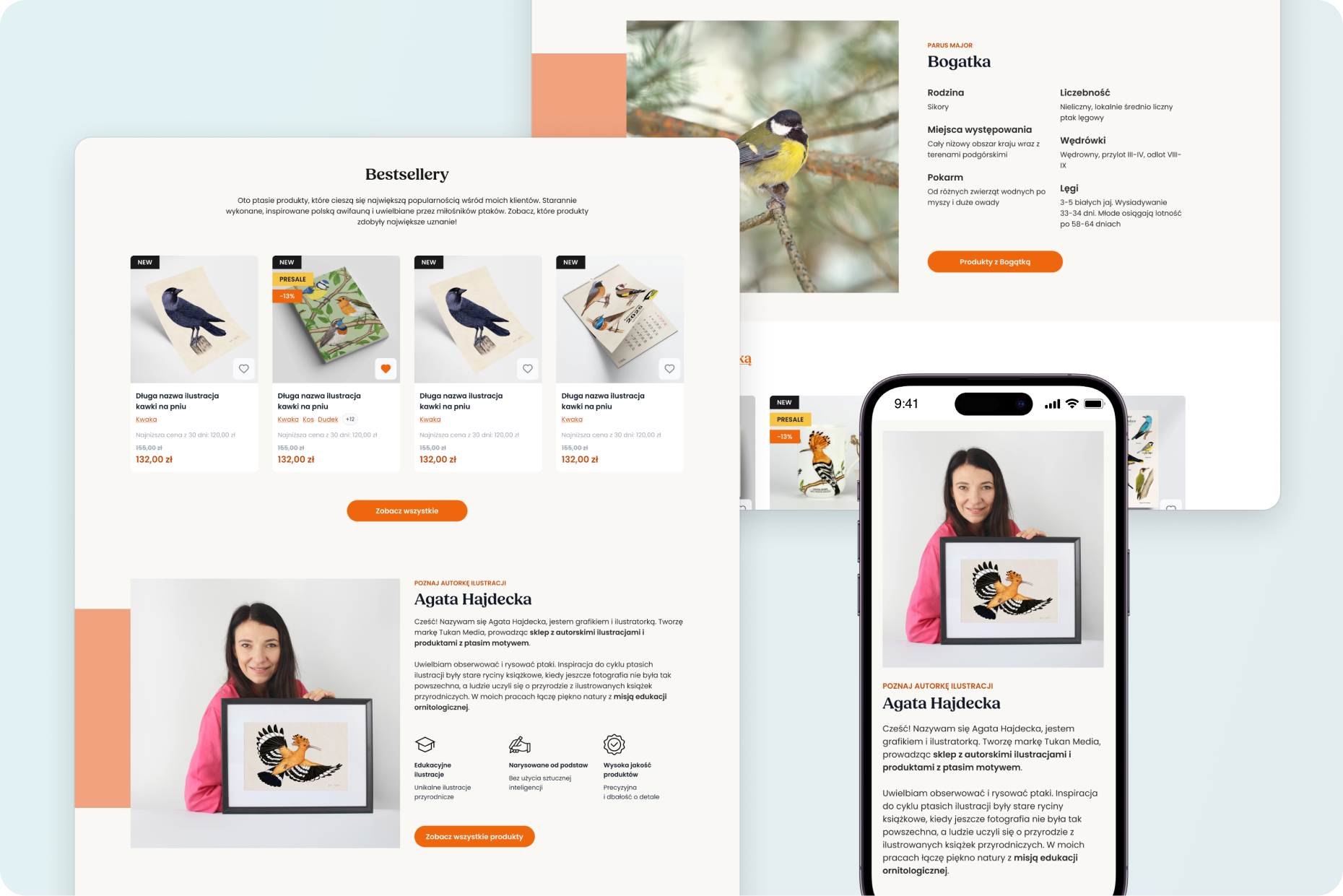 Klientką jest ilustratorka oraz edukatorka, która od lat popularyzuje wiedzę o polskich ptakach. Tworzy autorskie ilustracje, plakaty, a także wysokiej jakości produkty użytkowe, takie jak bawełniane torby czy porcelanowe kubki.