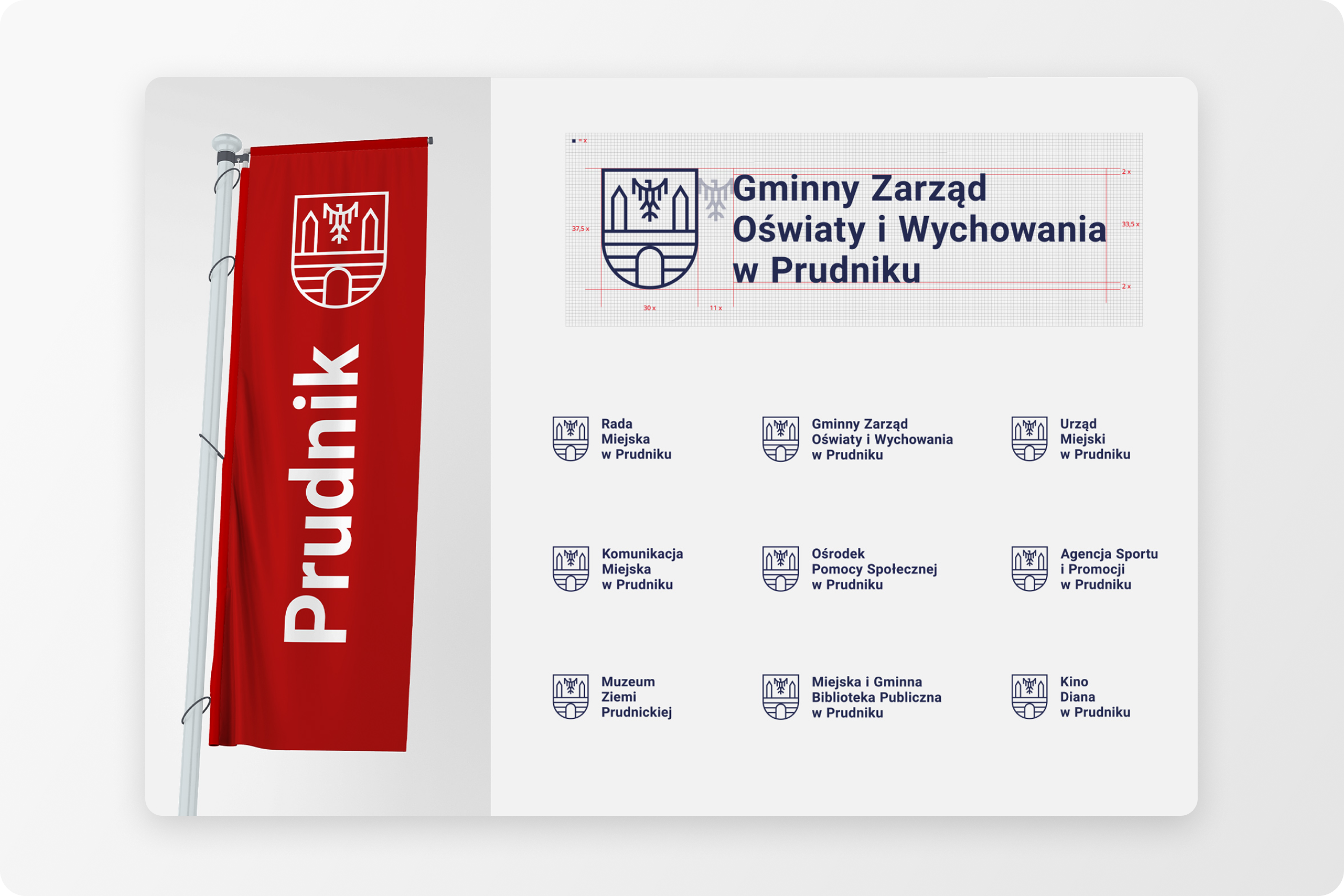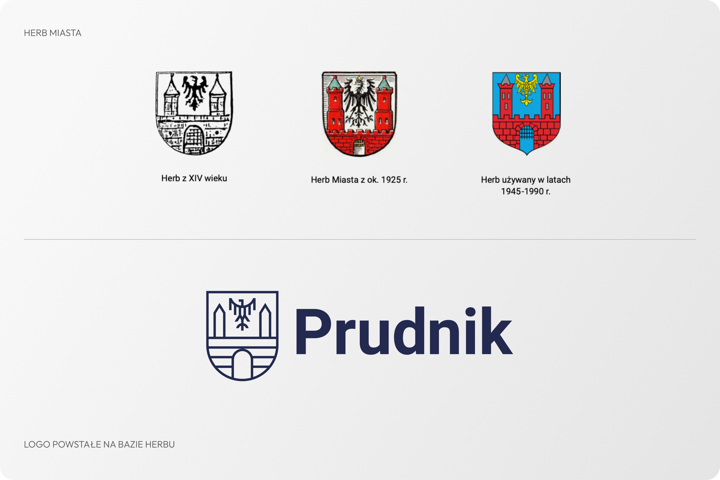 Tematy: System identyfikacji wizualnej, projekt logo miasta, branding miejski, księga znaku, identyfikacja jednostek miejskich, heraldyka, ikony miejskie, branding miasta Prudnik