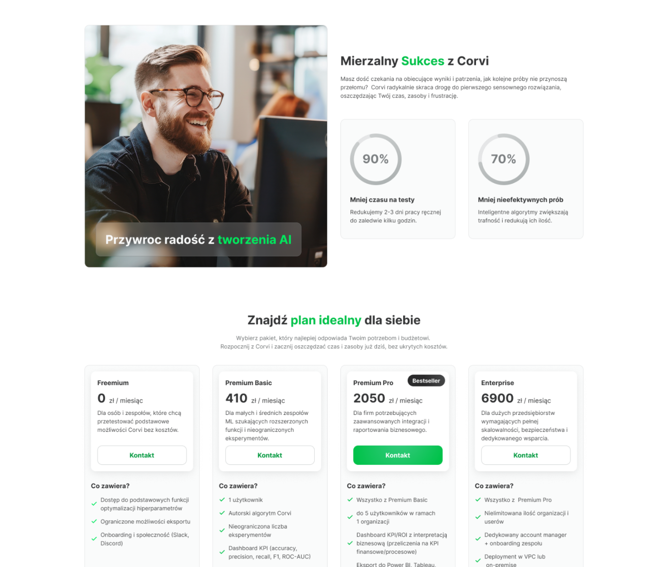 Strona internetowa platformy SaaS do optymalizacji hiperparametrów modeli uczenia maszynowego