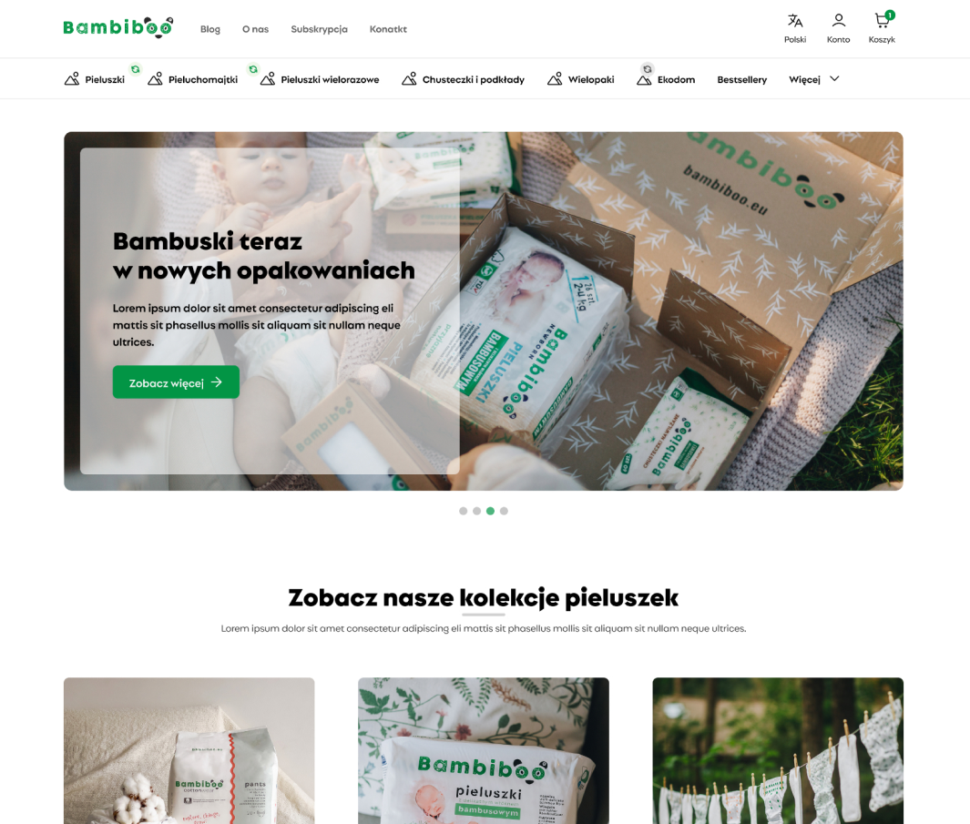 Projekt UX/UI sklepu internetowego dla polskiej marki Bambiboo, oferującej ekologiczne pieluszki bambusowe.